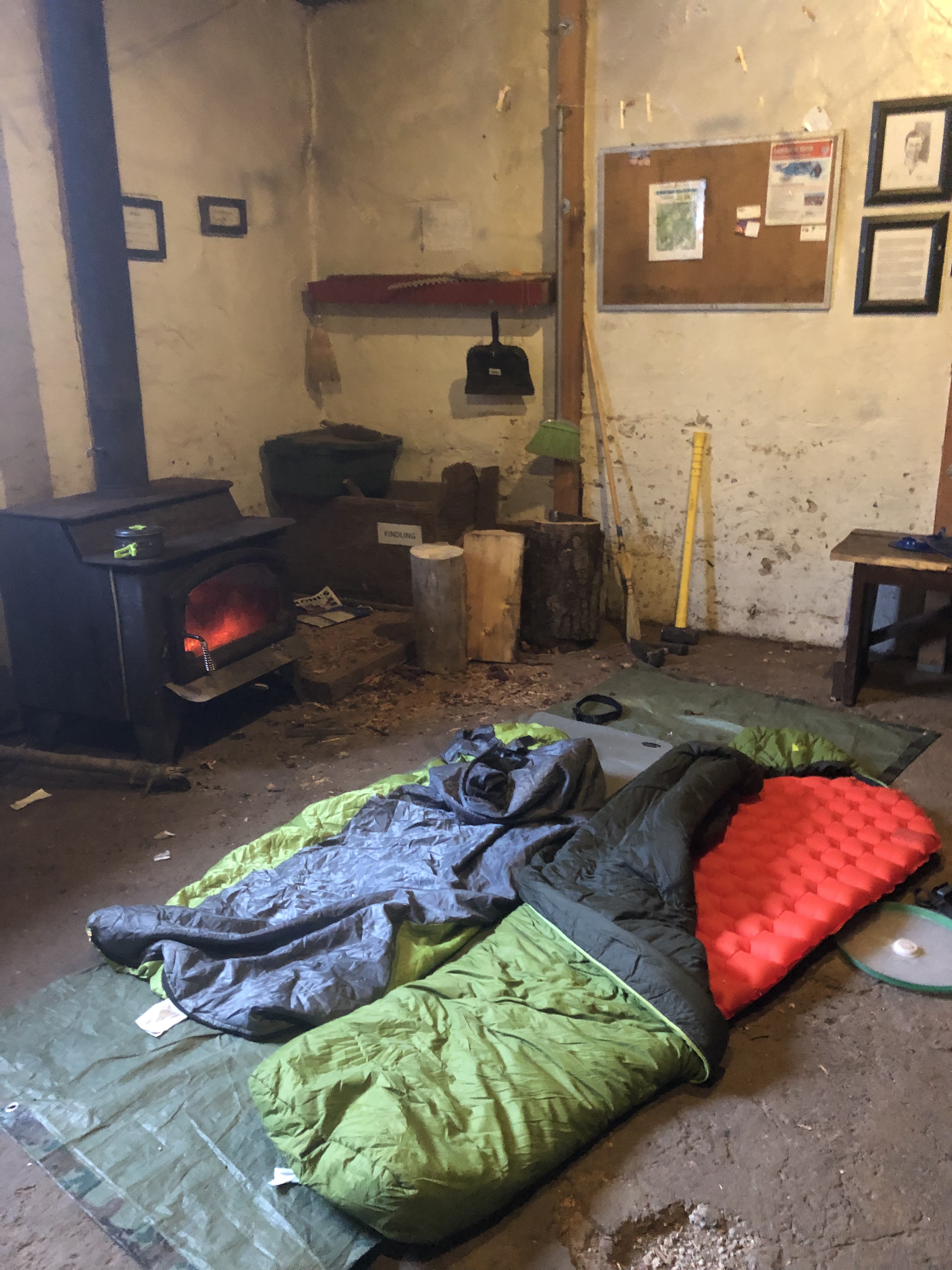 The hut has a wood-burning stove for heating purposes, a few pots and pans, utensils, and a couple of propane stoves. We used the wood-burning stove to melt snow and used our jetboil to cook food. We figured we’d leave the communal propane for folks who need it.- Jetboil