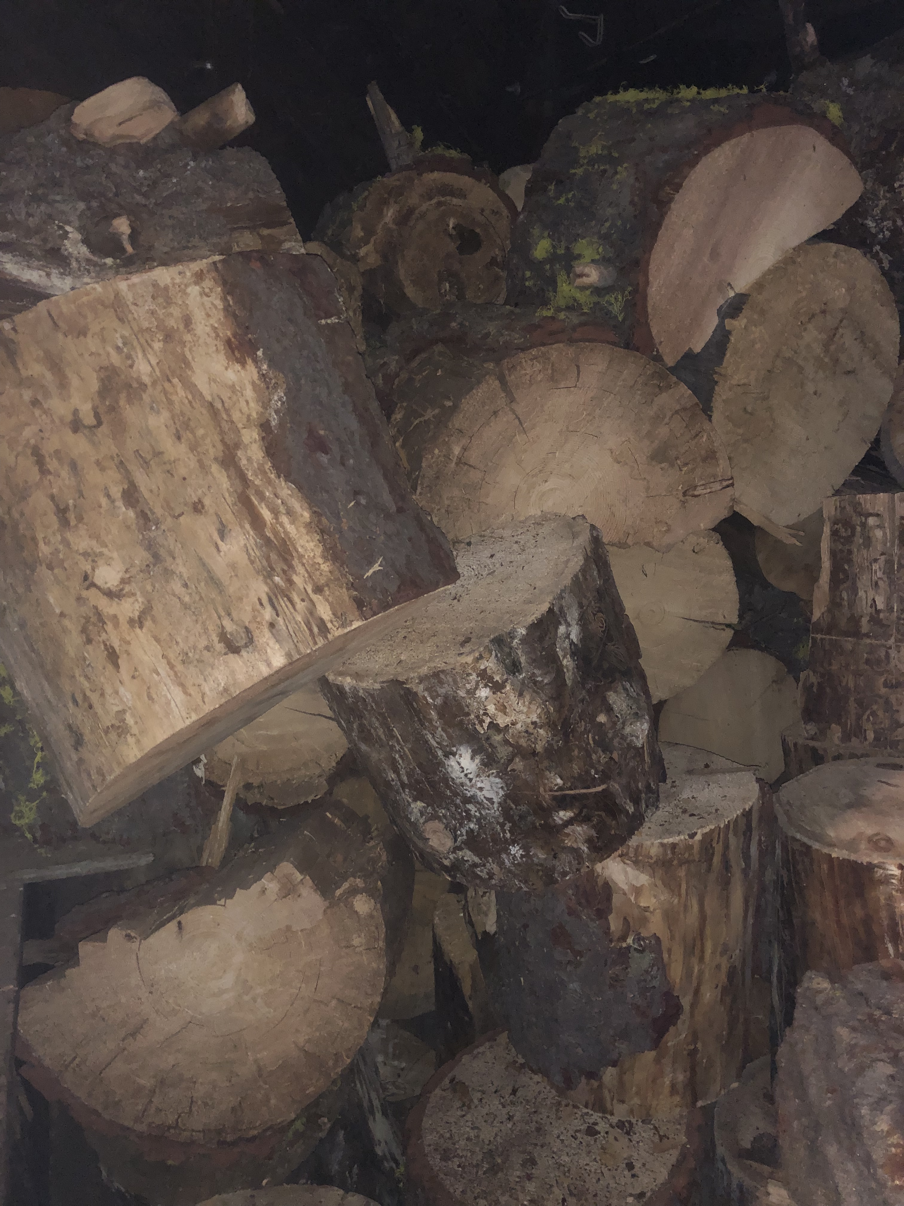 Hut has a wood stove. 3 step ladder to get into hut. long ladder to get downstairs to kitchen and table area.